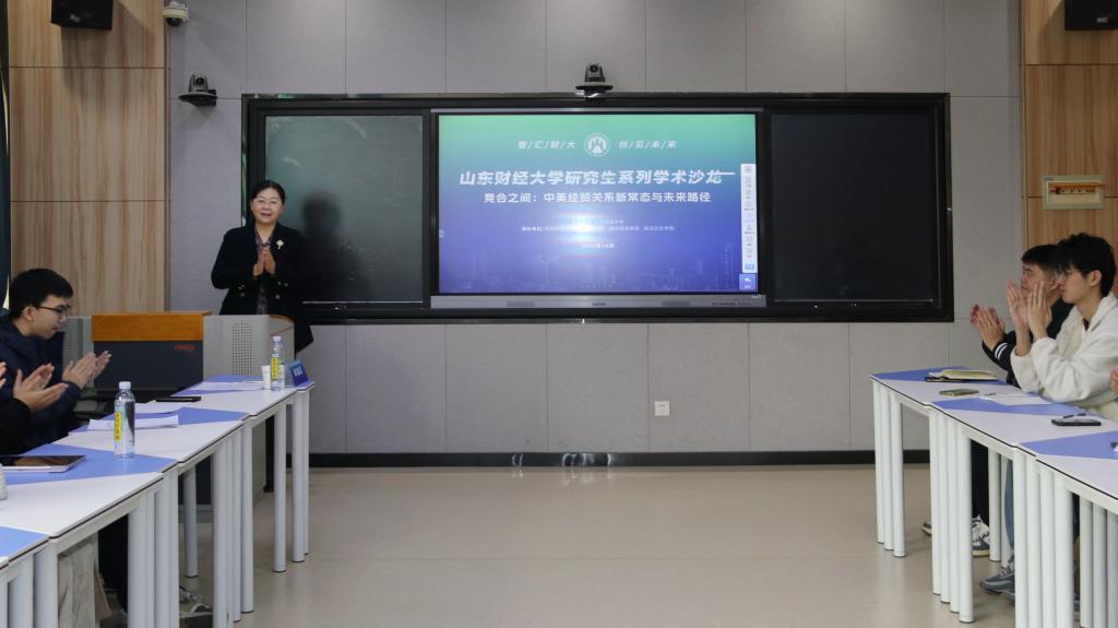 10月31日下午,“智汇财大·创见未来”山东财经大学国际经贸学院研究生系列学术沙龙第三期活动在舜耕校区举行。本期沙龙采取产学研联动形式,主题是“竞合之间:中美经贸关系新常态与未来路径”。来自山东理工大学的李平教授、香港麦家荣律师事务所驻济南代表处王巧莲主任应邀参加并作主题发言,山东财经大学国际经贸学院副教授卞学字、博士研究生满嘉诚汇报工作论文,学校部分博士研究生参与互动讨论。