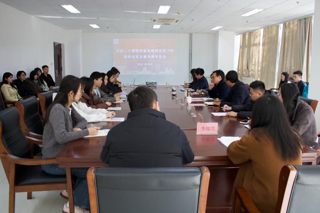 11月13日上午,校党委副书记、校长洪俊杰以普通党员身份参加国际经贸学院研究生党支部“学深悟透党的二十届四中全会精神,勇担经贸青年时代使命”主题党日活动。学校党委组织部副部长郑敏、国际经贸学院党委书记刘波参加活动。